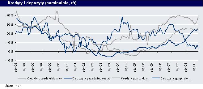 Bardzo słabe dane dotyczące produkcji, inflacja CPI powracająca w okolice górnej granicy celu, recesja u głównych partnerów handlowych jak i znaczące ograniczenie dostępności kredytu to argumenty za rozważeniem obniżek. Naszym zdaniem RPP nie zdecyduje się na taką decyzję już w listopadzie, z uwagi na ostatnie osłabienie złotego, które usunęło około 2/3 z zacieśnienia polityki pieniężnej, jakie dokonało się w przeciągu ostatnich 12 miesięcy (w ujęciu MCI - indeksu restrykcyjności polityki pieniężnej powróciliśmy do poziomu z lut-08). RPP powinna raczej oczekiwać na szczyt inflacji bazowej oraz rostrzygnięcie kwestii podwyżek cen regulowanych na początku roku (zakłady energetyczne zażądały od URE znaczących podwyżek cen energii od początku roku). Pierwsza obniżka może mieć miejsce już na początku 2009, a łączna skala rozluźnienia polityki pieniężnej wyniesie w przyszłym roku przynajmniej 100pb.