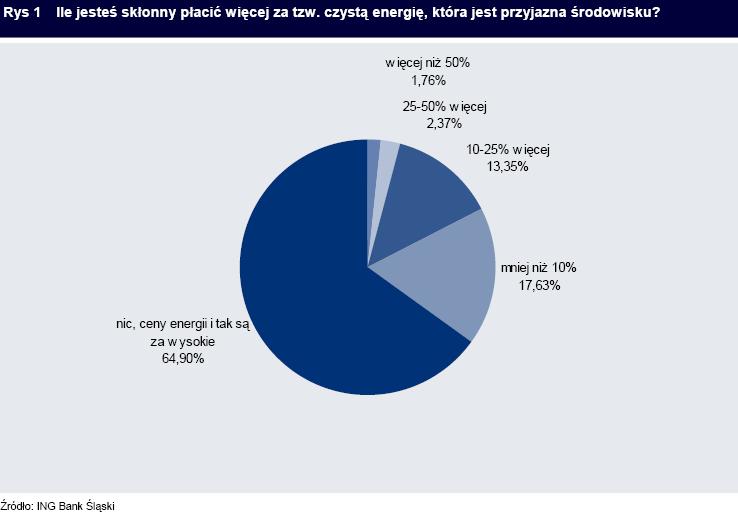 W ankiecie przeprowadzonej na stronie ING BankOnLine zadaliśmy naszym klientom pytanie, ile są skłonni płacić więcej za energię przyjazną środowisku. Uzyskaliśmy prawie 30 tysięcy odpowiedzi. Blisko dwie trzecie respondentów zadeklarowało, że obecne ceny energii są na tyle wysokie, że nie byliby skłonni dodatkowo „dopłacać” do tzw. czystej energii.