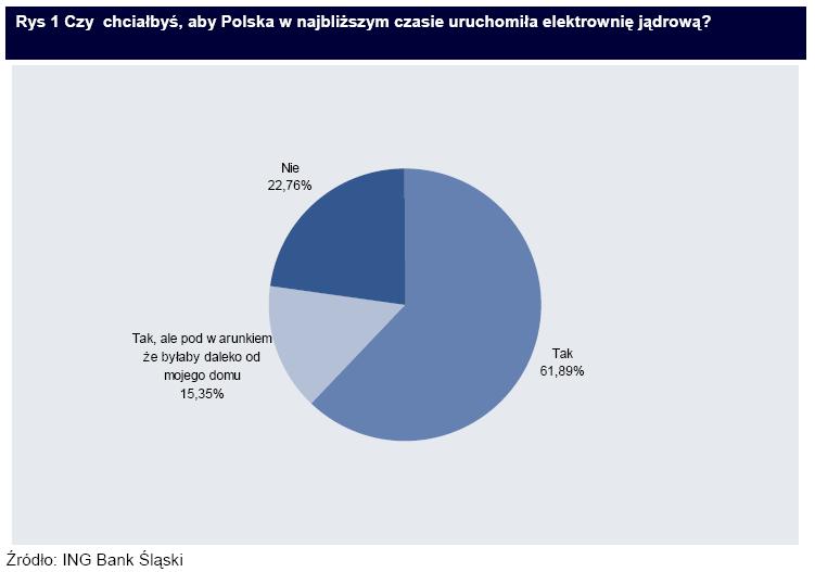 Ostatnie wydarzenia, takie jak wojna o gaz między Moskwą i Kijowem i zakręcenie kurka Ukrainie (a przy okazji innym krajom), zmuszają do szukania sposobów wyjścia z tej niekomfortowej sytuacji. A może energia atomowa? Jak pokazują wyniki naszej ankiety, społeczne poparcie dla niej nietrudno zbudować. 77% respondentów popiera budowę elektrowni atomowej w najbliższym czasie, przy czym 15% zgłaszałoby ewentualnie zastrzeżenia co do lokalizacji. Przeciwnicy stanowili 23% próby. W ankiecie przeprowadzonej na stronie ING BankOnLine wzięło udział ponad 24 tys. osób.