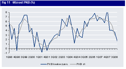 Jednocześnie GUS zrewidował (poważnie!) dane PKB za ostatnie lata. Największe zmiany dotyczyły właśnie wydatków publicznych. Do wczoraj zagadką był niewielki wzrost konsumpcji publicznej w 2008 roku. Dziś wiemy, że wzrost ten okazał się jednak znaczący – w samym 4kw wyniósł on 14,1% r/r – to rekord wszechczasów. W całym 2009 zobaczyliśmy 7,7proc wzrostu. Z ministerstwa wiemy też, że inwestycje w centralne w 2008 roku wzrosły o 32%, zaś samorządowe o 18%. Łączny wzrost PKB w 2008 okazał się o 0,1pkt większy (4,9% r/r), zaś w 4kw 3% r/r.