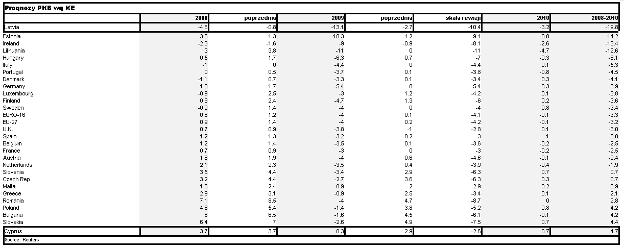 Reuters donosi dziś, że założenia budżetowe co do wzrostu w 2010 roku będą w przedziale 0,5-1,3%, zaś inflacja 1,5-1,9%. W dzisiejszym Dzienniku wywiad z ministrem Jackiem Rostowskim, który tłumaczy dlaczego nie zgadza się z prognozą KE, oczekując wyższego wzrostu inwestycji (w tym mieszkaniowych i drogowych) oraz mniejszego wzrostu stopy oszczędności. Ewentualna rewizja budżetu ma nastąpić po lipcu i danych za 1 poł roku. Jeśli będzie taka potrzeba, rząd wybierać będzie „najmniejsze zło” z następującego zestawu: zwiększenia deficytu, zwiększenia dochodów oraz większych oszczędności. Jacek Rostowski mówi wreszcie do wejścia do strefy euro musi zdarzyć się naraz stabilność kursowa, niski poziom deficytu budżetowego i zmieniona konstytucja, a „na razie tak nie jest”. Tyle tylko, że minister mówi o strefie euro, nie zaś o ERM-2, więc w gruncie rzeczy nie jesteśmy mądrzejsi w sprawach bieżących.