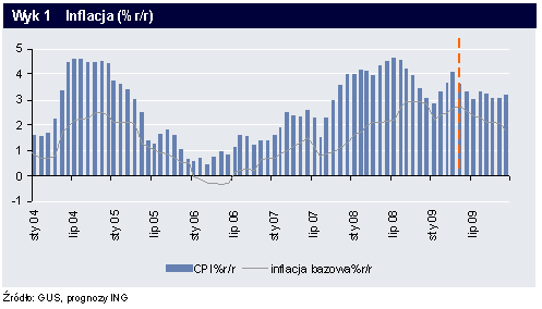 Ministerstwo Finansów pokazało, że spadek inflacji będzie postępował bardzo szybko – w czerwcu miałoby być osiągnięte 3%r/r a w sierpniu 2,5% (naszą prognozą dla obu tych miesięcy jest 3,3%, chociaż pogoda była jak dotąd korzystna, dając nadzieję na dobre zbiory i dezinflację w żywności). Co więcej, wstępne założenia budżetowe na 2010 zawierają wzrost CPI 1% (według nas będzie to 1,7%r/r).