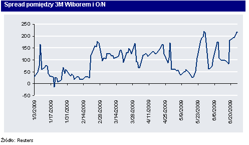 Wibory obniżyły się po cięciu stóp o 12-14pb, a więc decyzja RPP jakiś wpływ na koszt kredytów miała (choć wpływ ten ograniczany był przez komentarze członków RPP gaszące nadzieje na dalsze szybkie ruchy stóp). Jeśli RPP chciała rozszerzyć jeszcze różnicę pomiędzy stawkami O/N i 3M Wiborem, udało się jej to doskonale (jest to obecnie 218pb).