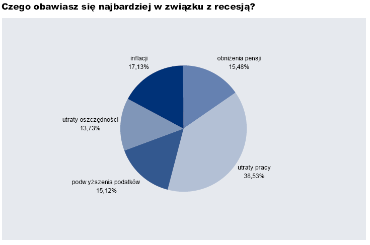 17% respondentów wskazało inflację jako potencjalnie najgorszą konsekwencję kryzysu, bardziej obawiając się dyskretnego zmniejszania realnych dochodów, aniżeli bezpośredniej utraty siły nabywczej przez obniżkę pensji lub zwolnienie. Można założyć, że dla osób które tak odpowiedziały zwolnienie albo obniżka są po prostu nierealne. 15% klientów ING uznało natomiast, że najgorszą rzeczą, jaka może się im przytrafić w związku z recesją jest łatająca budżet podwyżka podatków.