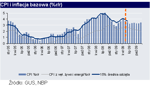 Członkowie RPP Marian Noga i Jan Czekaj obydwaj są zdania, iż stopy powinny pozostać na obecnych poziomach przez dłuższy okres. Jednakże według nas gospodarka może nadal osiągać rezultaty, które spowodują powrót do tematu dalszego rozluźniania polityki pieniężnej przez cięcia stóp. Podobny pogląd wygłosiła Halina Wasilewska-Trenkner widząc możliwość rewizji obecnego stanowiska RPP na jesieni. Uważamy, że wiele zależeć będzie od danych o PKB za 2kw09, które zostaną udostępnione dwa dni po sierpniowym posiedzeniu.