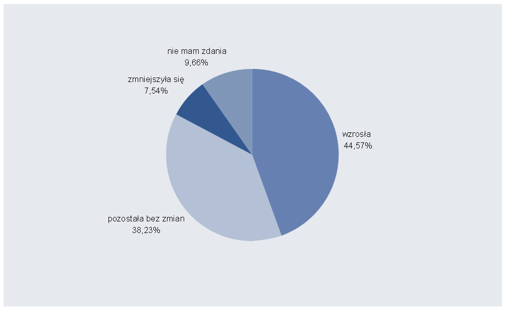 Tym razem nasi klienci korzystający z systemu bankowości elektronicznej ING BankOnLine zmierzyli się z pytaniem jak w porównaniu z drugim kwartałem tego roku zmieniła się liczba znanych im osób bez pracy. Blisko połowa ankietowanych (44%) przyznała, że zauważyli wokół siebie wzrost liczby bezrobotnych, spadek – już tylko 7%, a brak zmian odnotowało 39% respondentów. W ankiecie uzyskaliśmy blisko 37 tysięcy odpowiedzi.