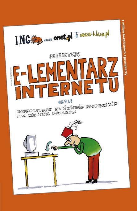 Bezpłatne egzemplarze „E-lementarza Internetu" czekają na wszystkich chętnych w 438 oddziałach ING Banku Śląskiego w całej Polsce. Książka została napisana z myślą o osobach stawiających pierwsze kroki w Internecie, dlatego wykorzystano w niej liczne ilustracje, wskazówki i przykłady przyjazne dla komputerowych debiutantów. Bohaterami książki są Henryk i Klara Walczakowie, małżeństwo z Katowic, które dopiero zaczyna swoją przygodę z komputerem. Ich przewodnikiem po świecie Internetu jest Marek Kondrat, który w przystępny sposób odpowiada na pytania, które zadaje każdy początkujący.
