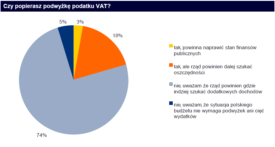 Uzasadnieniem rządu dla podwyżki VAT jest konieczność ograniczenia tempa wzrostu długu publicznego i potrzeb pożyczkowych. Rzeczywiście - nadmierna zależność rządu od „nastrojów” inwestorów rodzi kryzysy, za które płacą wszyscy obywatele. W ramach zachwiania wypłacalności rządu zagrożona jest zawsze stabilność systemu finansowego, rosną stopy procentowe i drożeją waluty. Dlatego pewnie co piąty ankietowany klient ING wyraził zrozumienie dla potrzeby łatania dziury budżetowej.