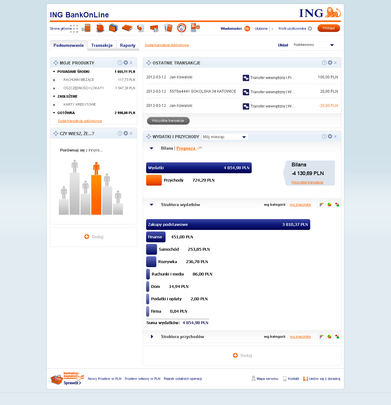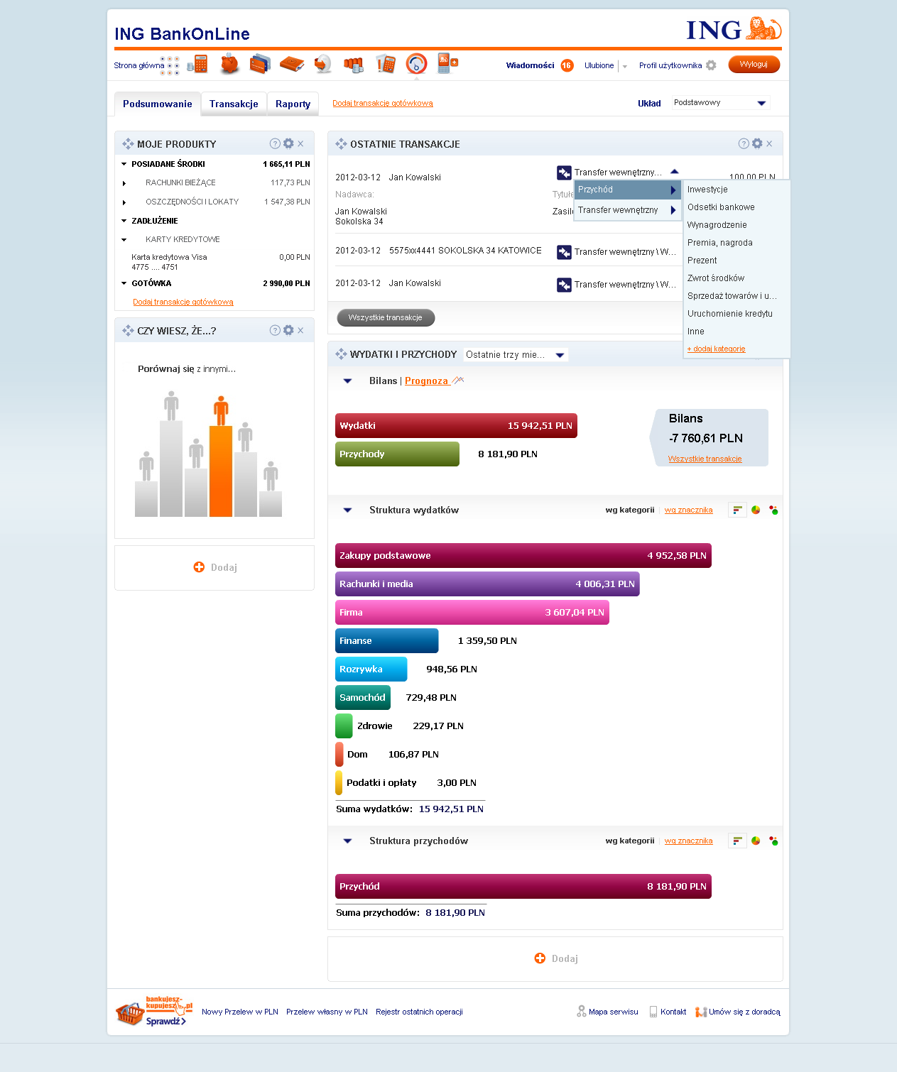W ubiegłym roku uruchomiliśmy nową, bardziej przyjazną wersję systemu bankowości internetowej dla klientów detalicznych. Aby sprostać potrzebom i oczekiwaniom naszych klientów nieustannie ją rozwijamy. Finansometr to kolejny krok – mówi Mateusz Poznański, Dyrektor ING Banku Śląskiego odpowiedzialny za kanały bezpośrednie. Zależy nam, aby klienci mogli łatwo zarządzać własnym budżetem domowym, a Finansometr w prosty i czytelny sposób pozwala na to. Aby skorzystać z jego zalet wystarczy zalogować się do ING BankOnLine – dodaje Mateusz Poznański.