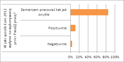 85% respondentów deklaruje, że podczas mistrzostw będzie pracować tak jak zwykle, a 11 proc. przebadanych mówi, że rozgrywki mogą mieć wręcz pozytywny wpływ na ich pracę, ponieważ będą pracować wydajniej, żeby mieć więcej czasu na oglądanie meczów. Tylko 4 % respondentów deklaruje, że mistrzostwa będą miały niekorzystny wpływ na wykonywaną przez nich pracę, gdyż planują oni odłożyć niektóre sprawy albo nawet zaniedbać swoje obowiązki – wynika z badania „Cup-o-nomics” zrealizowanego na zlecenie ING.