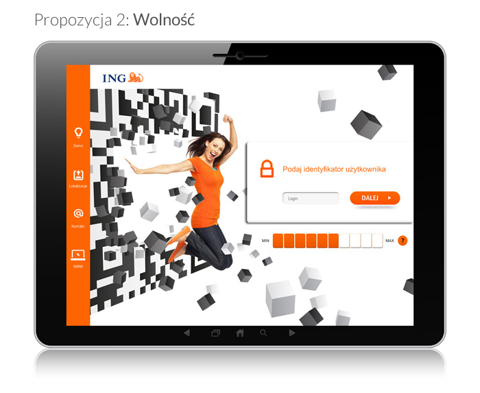 Bank dał klientom możliwość wyboru ekranu logowania do aplikacji ING BankMobile HD dla użytkowników tabletów. Na stronie www.ingbank.pl/glosuj można głosować na jedną z trzech grafik, które pojawią się na ekranie startowym. Użytkownicy mogą wybierać pomiędzy propozycjami: Miasto, Wolność, Energia. Zabawa trwa do 9 sierpnia br. do godziny 10.00.