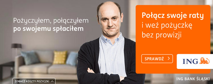 ING Bank Śląski proponuje zastąpienie kilku pożyczek lub innych zobowiązań kredytowych jedną ratą, którą klient może spłacać na własnych zasadach: raz mniej, raz więcej. W sytuacji, gdy posiada nadwyżki finansowe, może spłacić więcej niż wysokość raty ustalona w umowie, a harmonogram spłaty zostanie automatycznie zaktualizowany. Ponadto, ING nie pobierze prowizji za udzielenie pożyczki, jeśli co najmniej jej połowa (minimum 4 000 zł) zostanie przeznaczona na połączenie zobowiązań kredytowych z innych banków. Kampanię wspiera akcja promocyjna, dzięki której klient może dodatkowo otrzymać zwrot pierwszej raty (maksymalnie 200 zł).
