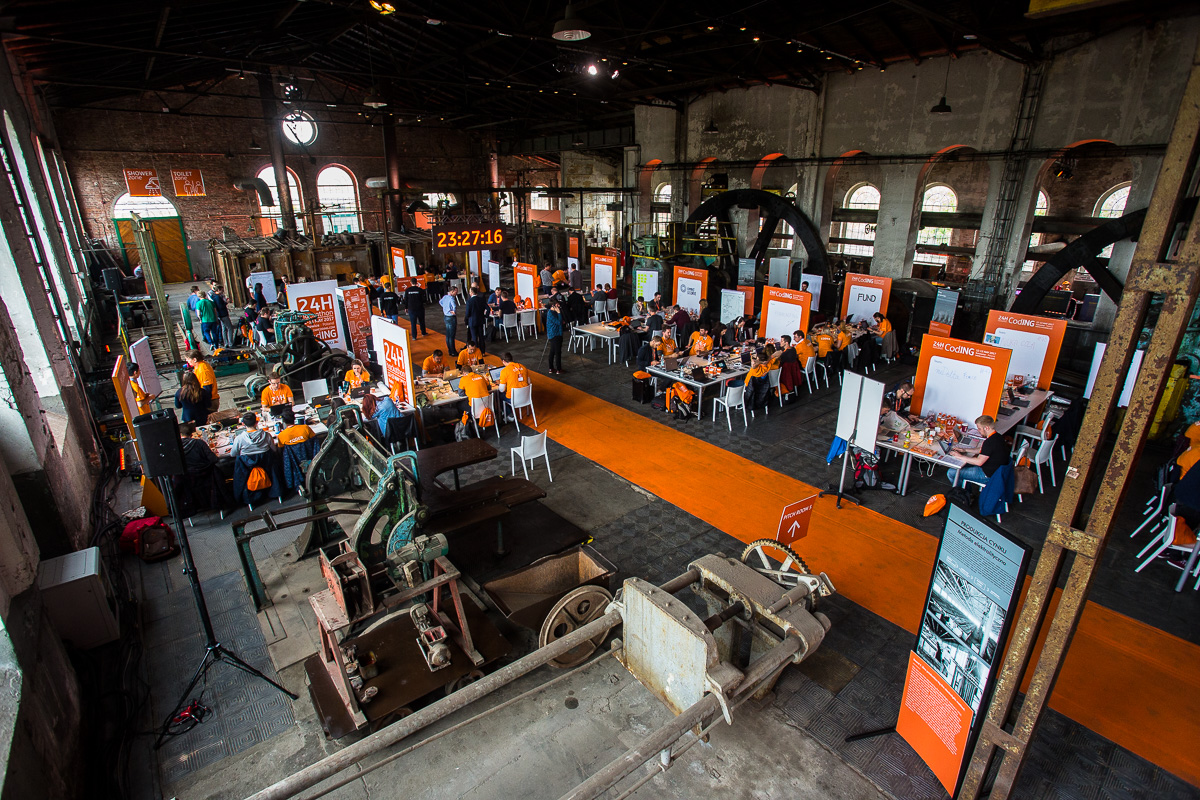Wyjątkową atmosferę tworzyło miejsce, w którym spotkali się programiści. 24H-CodING odbył się w budynku zabytkowej walcowni cynku w Katowicach, działającej w tym miejscu od XIX wieku. Połączenie maszyn parowych, pieców i walcarek z setkami komputerów, monitorów i smartfonów, tworzyło niepowtarzalny klimat. By przystosować historyczny budynek na potrzeby hackathonu organizatorzy wykorzystali 14 km kabli komputerowych oraz zapewnili 1200 gniazdek elektrycznych. Na potrzeby imprezy przygotowano specjalne strefy relaksu, retro-gier, a także masażu. Wśród bogatej oferty cateringowej znalazły się m.in. food trucki, blender bike’i i „rzemieślnicze” lody. Do dyspozycji uczestników było również 100 miejsc do spania. Przez czas trwania imprezy wsparcie zapewniało blisko 100 osób – załogi, wsparcia technicznego i merytorycznego.