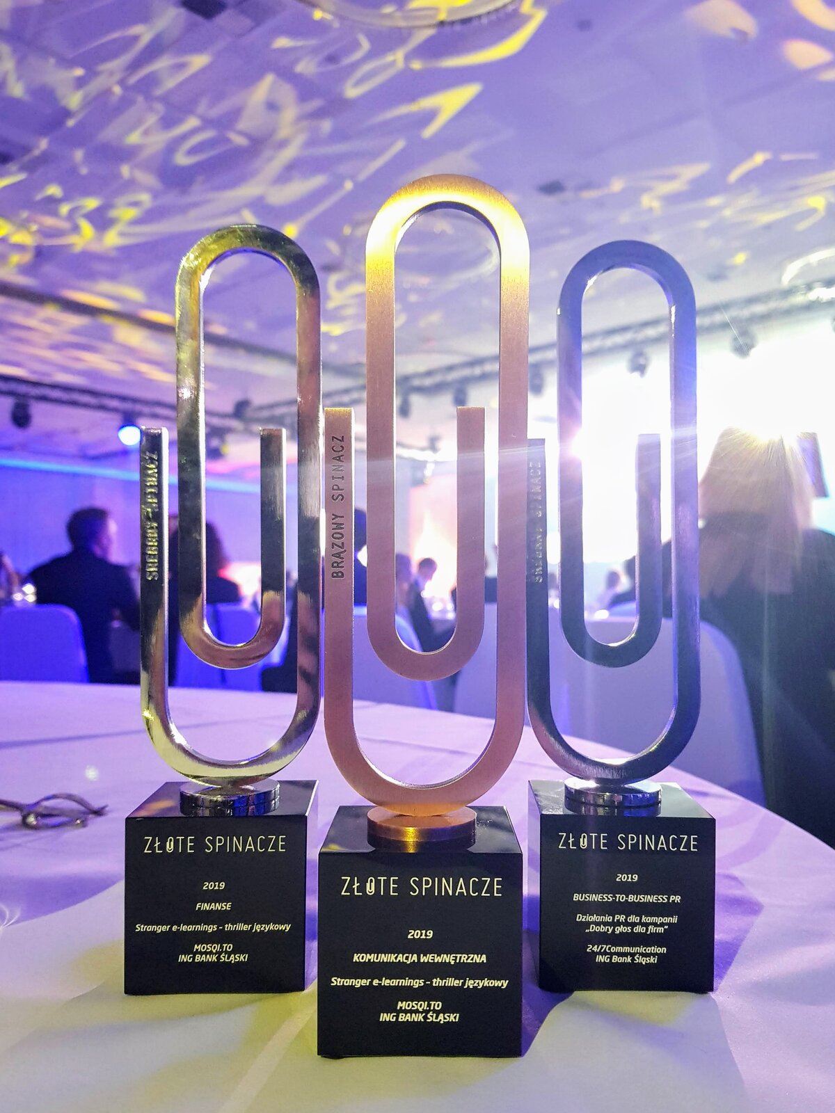 Podczas tegorocznej edycji "Złotych Spinaczy", ING Bank Śląski otrzymał aż trzy statuetki: dwie srebrne w kategoriach "Business to Business PR" oraz "Finanse" a także brązową w kategorii "Komunikacja wewnętrzna".