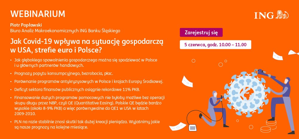 Zapisy tu: https://ingkonferencjeonline.clickmeeting.pl/jak-covid-19-wplywa-na-sytuacje-gospodarcza-w-usa-strefie-euro-i-polsce-/register
