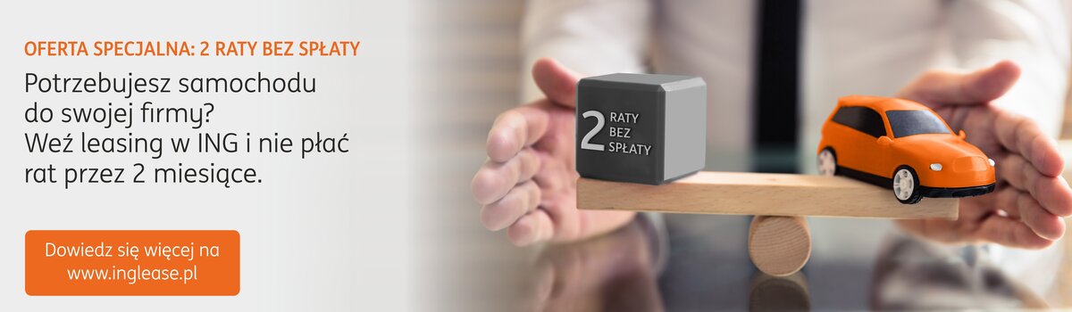 Przedsiębiorcy prowadzący działalność gospodarczą, zainteresowani leasingiem nowych i używanych samochodów osobowych i dostawczych do 3,5 t. mogą skorzystać ze specjalnej oferty leasingu „2 raty bez spłaty” w Programie ING Auto. Aby skorzystać z oferty, w której dwie pierwsze raty wynoszą 0 zł, wystarczy od 20 lipca do 30 września złożyć wniosek o leasing i podpisać umowę do końca października br. W proponowanej ofercie, spłata dwóch pierwszych rat leasingu jest odroczona o dwa miesiące, a klient nie ponosi opłaty w postaci odsetek za dwa miesiące użytkowania. Pełen regulamin oferty dostępny jest na stronie internetowej: www.inglease.pl