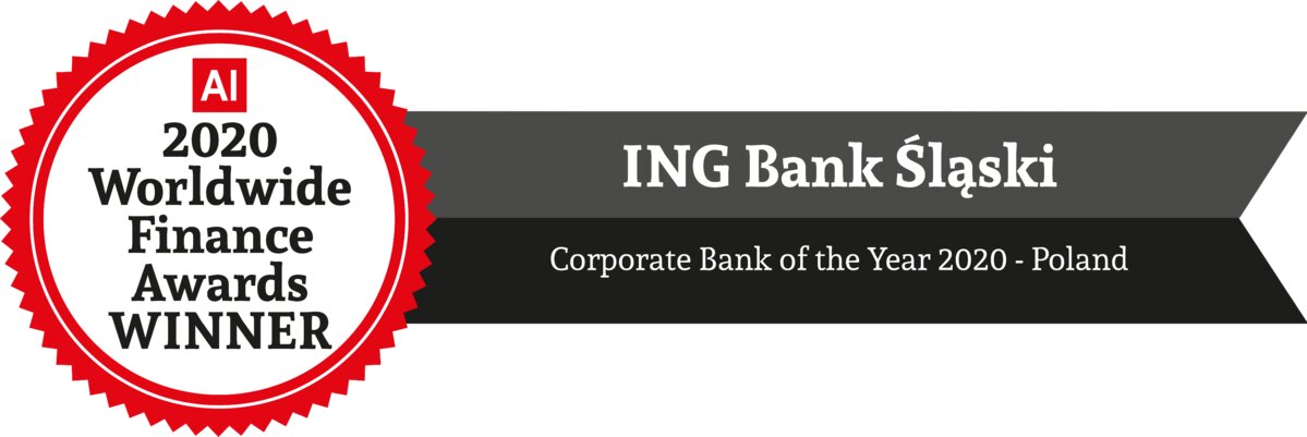 ING Bank Śląski otrzymał tytuł Corporate Bank of the Year 2020 - Poland przyznany przez kapitułę konkursu Worldwide Finance Awards 2020. Organizatorem rankingu jest międzynarodowy magazyn Acquisition International.