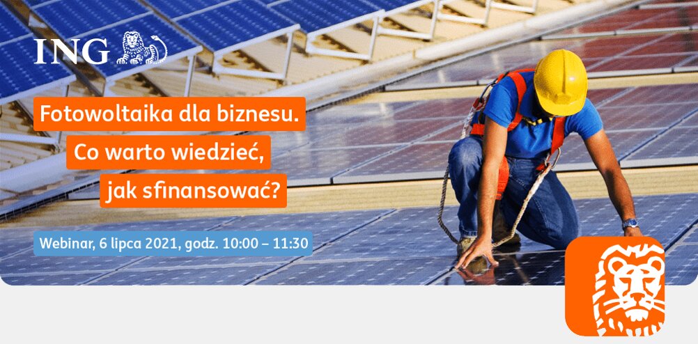 ING Bank Śląski zaprasza na webinar pt. „Fotowoltaika dla biznesu” podczas którego przybliży jak biznes i środowisko mogą iść w parze. Spotkanie odbędzie się we wtorek 6 lipca w godz. 10:00 – 11:30.