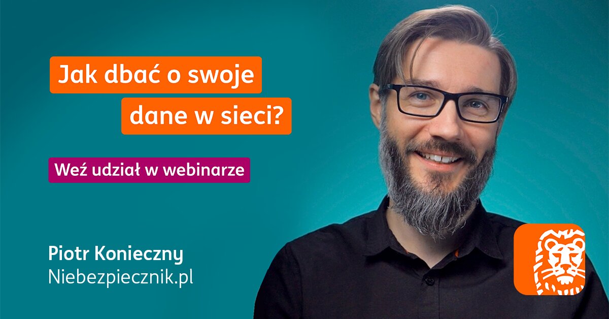 ING Bank Śląski zaprasza na webinar z Piotrem Koniecznym z Niebezpiecznik.pl – ekspertem ds. bezpieczeństwa w internecie.