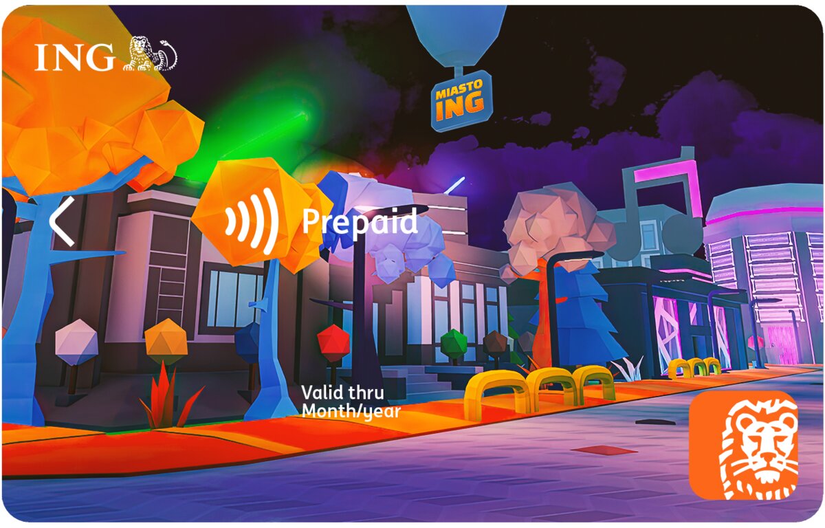 ING udostępnił nową grafikę dla karty przedpłaconej dla dziecka. Grafika jest inspirowana grą edukacyjną „Miasto ING” dostępną na platformie Roblox.