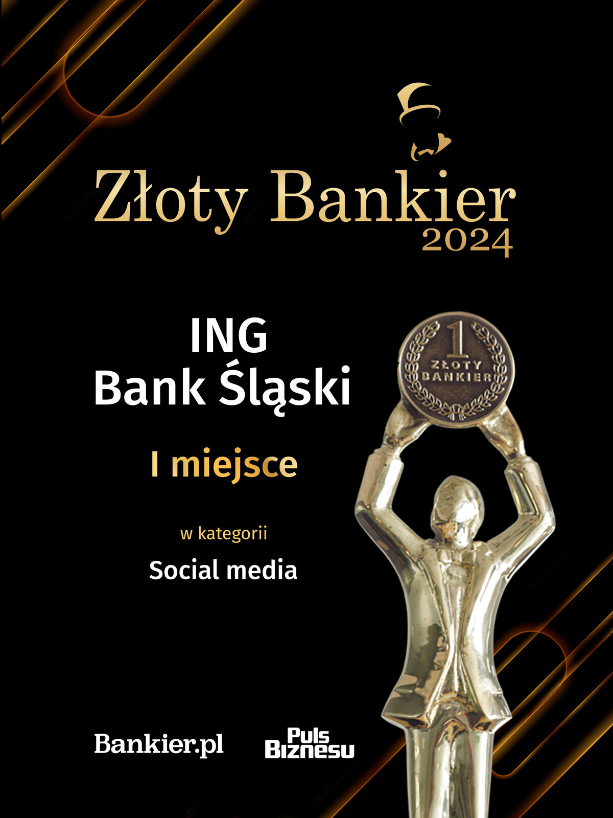 ING Bank Śląski ponownie został uznany za najlepszy bank w mediach społecznościowych w tegorocznej edycji rankingu Złoty Bankier, organizowanego przez Bankier.pl i Puls Biznesu. Ponadto, aplikacja Moje ING została liderem w rankingu oceniającym bankowe aplikacje.