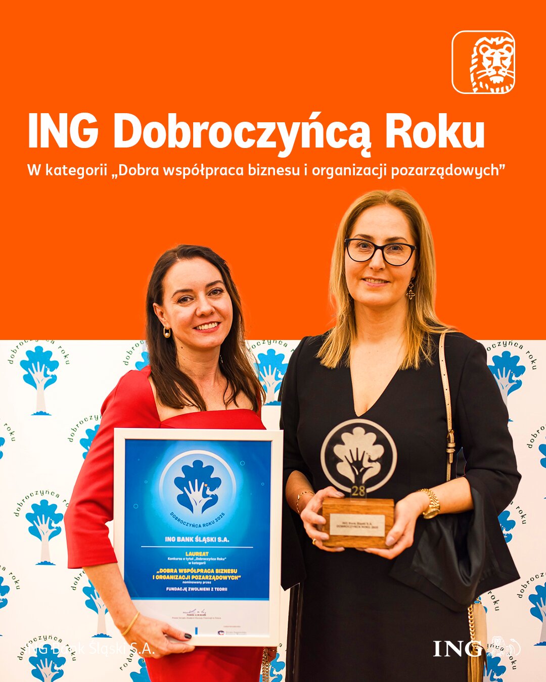 ING został nagrodzony „Dobroczyńcą Roku 2025”, w kategorii „Dobra współpraca biznesu i organizacji pozarządowych”. Kapituła przyznała nagrodę za współpracę z Fundacją Zwolnieni z Teorii.