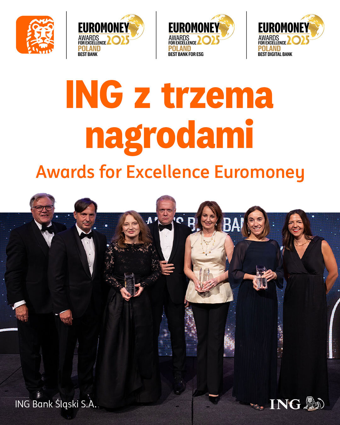 W tegorocznej edycji konkursu Awards for Excellence, organizowanego przez magazyn finansowy Euromoney, ING odebrał trzy nagrody na gali w Londynie: Poland's Best Bank, Poland's Best Digital Bank, Poland's Best Bank for ESG. Tytuł Poland's Best Bank trafił do banku już po raz siódmy.