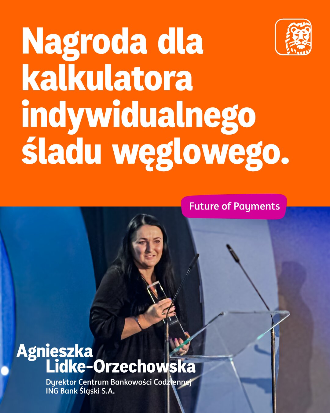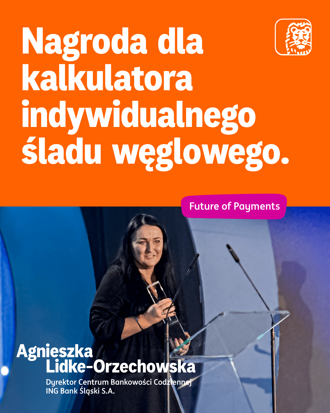 Doceniamy to wyróżnienie. Cieszymy się, że współpracując z Visa mamy możliwość dostarczania usług wspierających naszych klientów nie tylko w płatnościach, ale również w budowaniu odpowiedzialności i świadomości środowiskowej – powiedziała Agnieszka Lidke-Orzechowska, Dyrektor odpowiedzialna za obszar Bankowości Codziennej w ING Banku Śląskim, odbierając nagrodę na konferencji Future of Payments.