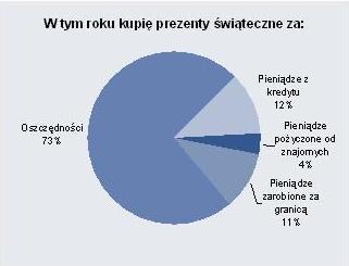 W ankiecie spytaliśmy klientów, za co kupią świąteczne prezenty. Około 74% Klientów ING biorących udział w badaniu wskazało oszczędności. Wcześniejsze wzrosty na giełdach, niemal 10-procentowa dynamika płac pozwalają na nawet duże zakupy bez zapożyczania się. Ponad 11,7% osób sfinansuje zakup prezentów za pomocą kredytu. Niewiele mniej osób, bo około 11%, kupi prezenty dzięki pieniądzom zarobionym za granicą. Nic dziwnego - statystyki NBP pokazują, że w formie transferów prywatnych przypływa dziennie niemal 20mln euro. Najmniej (niecałe 4%) pożyczy pieniądze od znajomych.