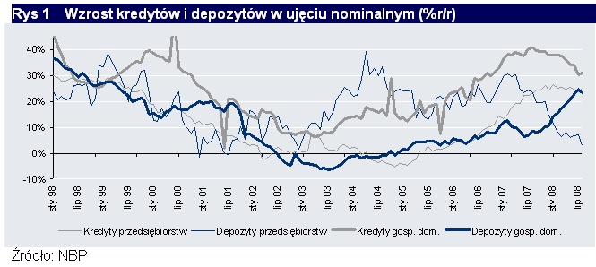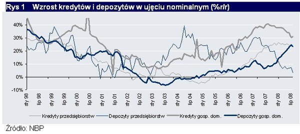 Wzrost kredytów i depozytów w ujęciu nominalnym (%r/r)